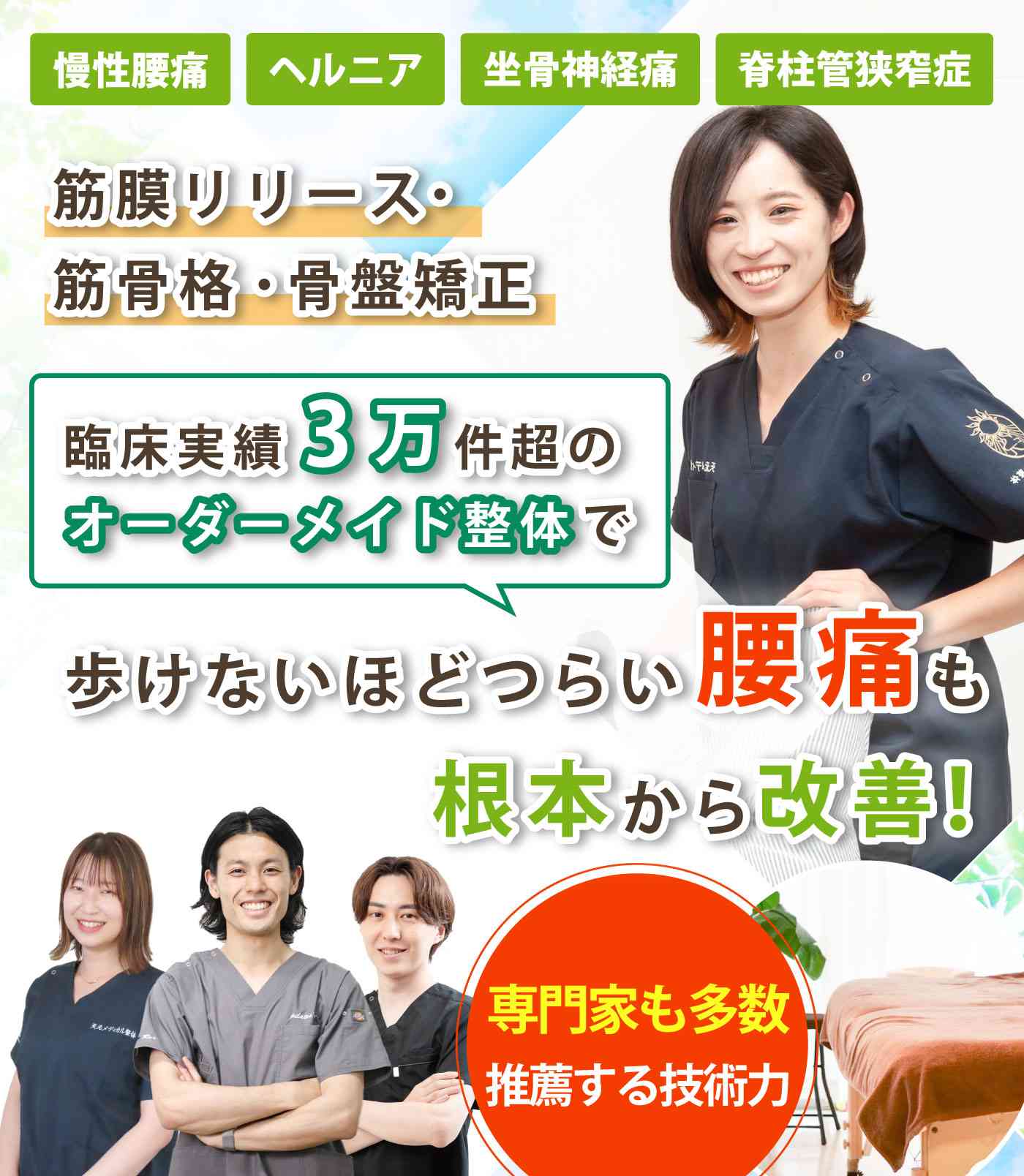 病院や施設、整体院でさまざまな臨床経験を積んだ院長が立ち上げた整体院で、臨床3万件を超える実績があります。